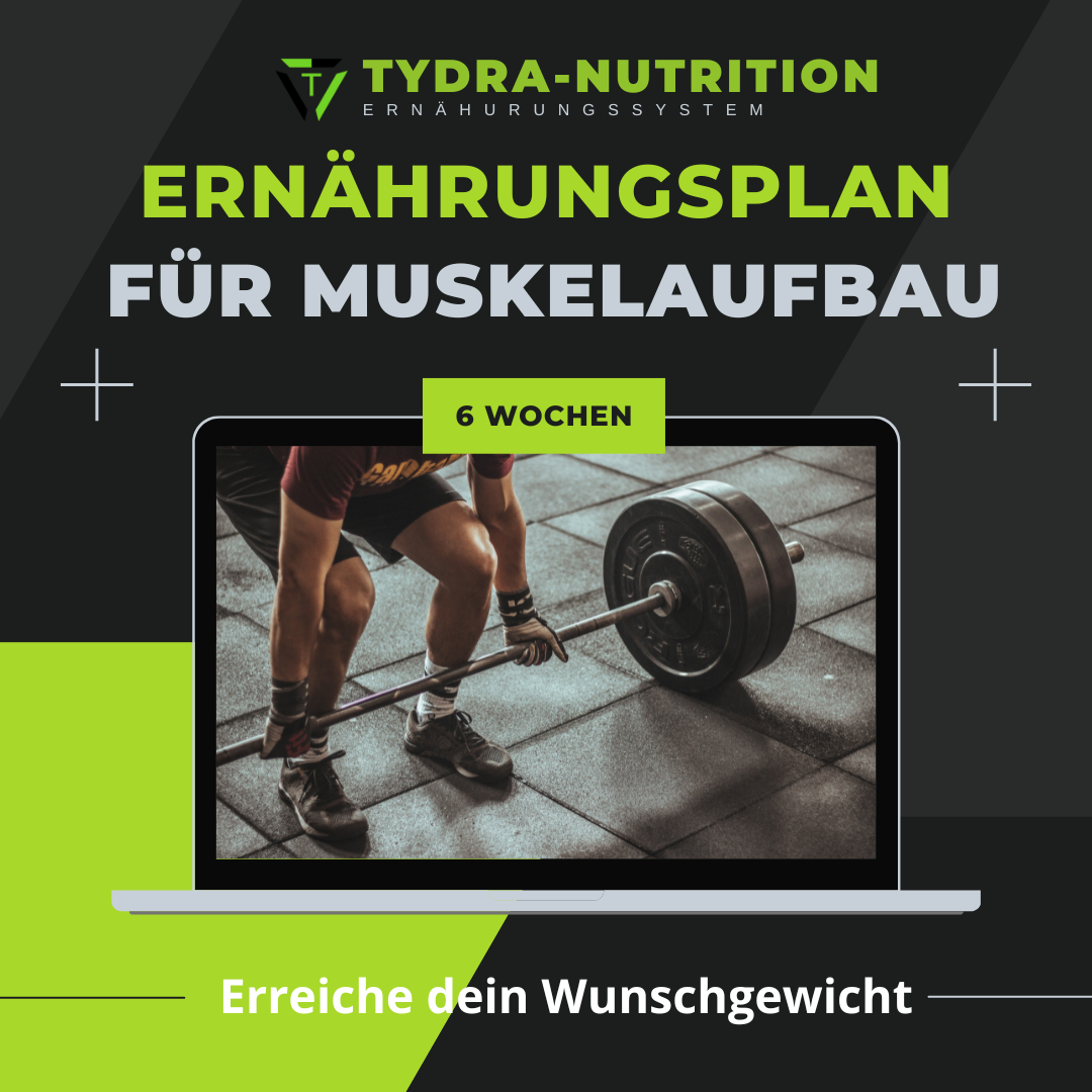 Jetzt Ernährungsplan sichern und endlich mit Struktur gezielt, aber vor allem gesund und nachhaltig Muskeln aufbauen.